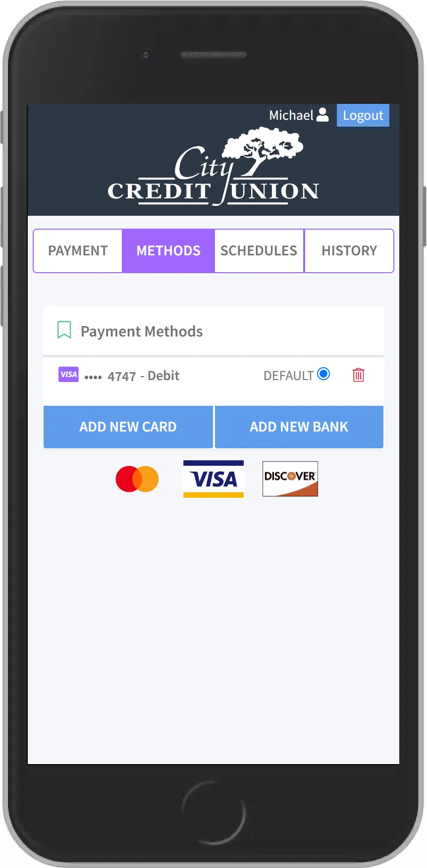 Pay via text message, our website, or City Credit Union online and mobile banking.